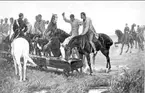 "Vattning Sanna hed". Vattningen skedde i långa hoar, skvadronsvis, i äldre tider vid Ravlaån, där avgående vakten skötte uppumpningen. Skvadronordning utropades från ÖN, stallofficeraren med kartusch är CAC Lewenhaupt.