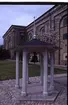 Klockstapel vid SMU-gården i Skärholmen. I bakgrunden nybyggda flerbostadshus.