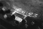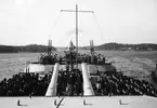 Arbete med motorbåtsdävertar på kryssaren Gotland.