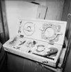 Föremål, plåtlåda (rostfritt). Amsta Mekaniska Verkstad. Ur Gustaf Åhmans samling.