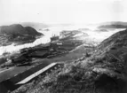 Göteborgs hamn. Inloppet till Göteborg taget från S:t. Eriks höjd. Till vänster nederst på bilden syns tullhuset. Något längre till vänster om bilden ligger stenbron, det är härifrån som vi skola begiva oss med en av Marstrandsbolagets båtar upp genom kusten.