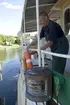 Utställning i Sjöfartsavdelningen, mastrummet. En man håller i en större lanterna i utställningarna.