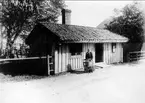"Fattigstugan" Dora Beata Bäckmans (döva Beata) stuga i Rödesund, var en f.d. marknadsbod. Förstoring 34 x 47 cm.