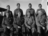 Medaljörer framför huvudbyggnaden på Frötuna gård, Rasbo socken, Uppland 1948