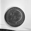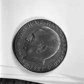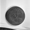 Vestibulen n.b. Målad medaljong, Kalmar Slott. Färger: Benvitt och mörkbrunt, ljusgröna blad och gråskära bär, väggen begie. Medaljongerna möjligen målade av två fröknar Ljung, som var anställda vid Sandbäcks kakelfabrik, Fabriksgatan 26 (enligt uppgift av herr Charles Isaksson, Kalmar).