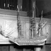 Sjöhistoriska museets modellverkstad. Stefan Bruhn i arbete med sin modell av en mälarjakt från 1700-talet.
