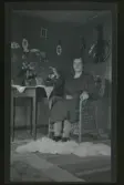 Edvard Martinsson, Södra Kärnberg. Född 1881-03-07, död 1962-08-04. Gift 1922-06-04 med Kajsa Larsson (född 1866-04-27), änkling 1928-02-25 (cancer). Edvard blev enbent genom en huggarolycka i skogen. Per Jonsson stoppade blodflödet genom att lägga en kortlek över såret. Edvard begav sig så snabbt som möjligt med hästfärd till doktor Oskar på gamla sjukhemmet i Torsby. Han öppnade såret som började blöda igen. Då bands ettt hårt tryckförband över såret och Edvard blev förd med hästskjuts till Myra järnvägsstation i N:a Råda i Klarälvdalen för vidare befordran till lasarettet i Karlstad. Det visade sig då att tryckförbandet varit för hårt och det hade hunnit bli kallbrand i benet och det måste amputeras. Men han lärde sig snabbt att ta sig mycket bra fram med krycka. Han fick en protes men den tyckte han var så klumpig att han egenhändigt gjorde en stövel av den. Han blev utbildad till skomakare pga sitt handikapp. Men han hade alltid bråttom och det när han lagade skor också, så laggen hamnade ibland brevid hålet. När detta påpekades svarade han: - Ja, det blev bara så. Så det blev skogsarbete som blev den egentliga inkomstkällan. Han byggde en evighetsmaskin och även fiolen, trots att han inte spelade själv.
