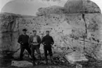 "Fästningen' , conglomeratbildning vid Cap Staratschin, d.4 Aug. 1872." Fr v: Krusenstjerna, Nordenskiöld, Palander.