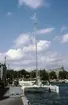 Vy åt S över Nybroviken med Centralfärjan 2, mot segelfartyget Christian Radich (norskt skolfartyg) vid Nybrokajen. I bakgrunden Skeppsholmen.
