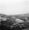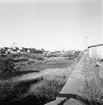 'Bildtext: ''Barrskogsområde. Riktning 152.'' :: Vy med berghäll i förgrunden med ev stenmur. Nedanför större område med barrträd (tall), på avstånd syns en gård. Stengärdesgård. :: :: Ingår i serie med fotonr. 6970:1-1125, dokumentation av Hisingens naturgeografi, visande landskapsformerna i stora drag och gjord inför exploateringen av området. Platserna för fotograferingen finns utsatta på karta i skala 1:4000 som finns på Göteborgs Naturhistoriska musem. Fotoriktningen mättes med kompass i gammalgrader.'