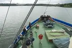 På däck ombord på isbrytaren Sankt Erik. I bild syns den inbyggda kommandobryggan.