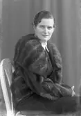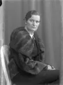 Kvinna i pälsjacka och mössa. Reklambild för L. Haglund & Co, med varumärket Elhå. Grundades som en affär för mössor, hattar och pälsvaror av Lars Haglund 1872.