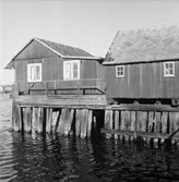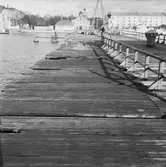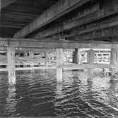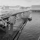 Foto i svartvitt visande en del av hamnen i Göteborg. Foto från pålverket åt V. Vintersjöfart.