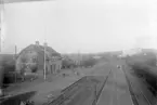 Södra stationsbyggnaden. Fasad mot banområdet. .