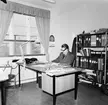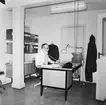Arkivarbetare Anna-Lisa Lundström i färd med att koppla museets telefonväxel 1952. Ur dokumentation av personalfotografier, SSHM.