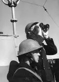 Ombord på Makrillen 1972. Personen till vänster är Bengt Pauli, den andra är en engelsk officer taget i torpedrummet