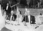 Edward Clason (längst bak). Clason var tidigare chef för Stockholms örlogsvarv och utsågs våren 1957 till ordförande i den s.k. Wasakommittén, som undersökte de tekniska och ekonomiska möjlighterna att bärga Vasa. Här med prinsessan Margaretha och prins Friedrich Viktor von Hohenzollern, prinsessan Birgittas svärfar. I bakgrunden syns S/S Viking (b 1910) som åskådarfartyg