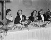 Gudrun Sahlgren, statsrådet Karl Gustaf Westman, Elisabeth Linnér och professor Jöran Sahlgren på Uppsala Rotaryklubbs charterfest i Rikssalen, Uppsala slott