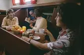 Interiör, ruff i Albin Vega. En familj äter frukost. Marknadsföringbild.