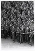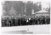 "Tyst" demonstration av de värnpliktiga på I11:s kaserngård, mot permissionsbestämmelserna (skulle vara inne kl 22.00). Onsdagen den 23 januari 1974, kl. 12.30-12.40.