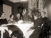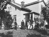 Anders Peter Karlsson f. 5/4 1847 i Undenäs. nr 1. Augusta Persdotter f. 3/4 1849 i Älgarås. nr 4. Son, Gustaf Adolf Andersson f. 6/3 1873, död 1954. nr 2. Hans hustru, Hanna Jonsson f. 29/5 1874, död 1958. (Fosterdotter Sally Henrietta Hjertén). Siffrorna anger placering på bilden fr.v. 3 och 5, tjänstefolk. Reprofotograf: Gunnar Berggren.