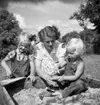Bild på Thomas och Eva i sandlådan, sommaren 1958.