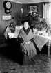Text till bilden: "Mia Åhlström i rullstol, (troligen dotter Maria Fredrika) bakom henne, en sköterska, därefter Thora Åhlström i mitten samt doktorinnan Johanna Beata Sofia till höger".
