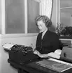 Kvinna vid skrivmaskin. Nora Tändrörsfabrik.