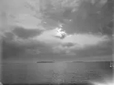 Tryckt text på kortet: "Bovallstrand, solnedgång, sedd från utkiken." "Förlag: Holger Carlsson, Bovallstrand." Noterat på kortet: "Bovallstrand. Tossene Sn. (Sotenäset.)". "Utsikt nordväst."
