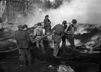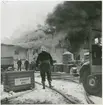Släckningsarbete vid branden i vagnhallen på Aga industriområde 1949-09-19 i Lidingö.