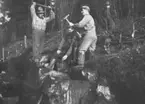 Stenbrott på Voxsätter 4:30, strax sydväst om Prästängestjärn. Stenarna användes vid brobygget över Voxna älv, klar 1917. Foto 1916.