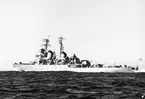 Bilden visar torpedkryssaren Örnen till ankars från styrbordssida.