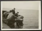 "Dykaren går ned för bärgning av torped på 52 m djup å södra Mysingen för ub. Svärdfisken pingstafton 1916."
