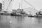 Småland, Kalmar. Parti av kolhamnen. Tv Svenska lantmännens silobyggnad.