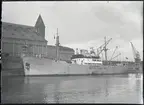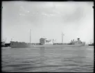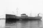 Göteborgs örlogsdepå. Tankfartyg vid Ryanäs oljehamn, Göteborg. fartyget tv på bilden är M/S Trykon av Kungsbacka, det andra fartyget är kam(o)uflagemålat och har namnet övermålat. Fil Gunnar Jonssons undersökningsresa till västkusten juni 1940. 184