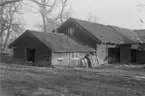 Johan Carlmans gård. Björklöv upphängt på tork på logväggen; lövet bryts när det är fullvuxet. Logen är byggd 1874.