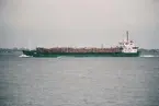 Bestyckat engelskt lastångfartyg utanför Malmö omkring tiden just efter fredsslutet 1945.