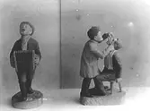 Tekningslärare Breitholz. Träfigurer i form av en pingvin och en man.
