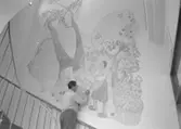 "Konstnären G. Fougstedt. Ulrikedal. Målar vägg. PLM. 1952.11"
