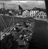 Fyrverkeri på strömmen. Vy mot Norrbro och slottet.