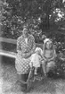 Mormor Nora Krantz hjälper Karin Pettersson (gift Hansson) att cykla på sin nya trehjuling, Torrekulla 1948.