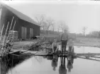 Morbror, moster och jungfrur tvättar utomhus, Bjärby, Västerås.