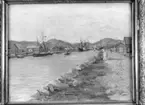 "Uddevalla. Tavla av Gunnar Åberg. "91 U-a [ddevalla] hamn." enligt uppgift av fotografen.