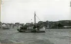 Amiral Tamm, chefen för marinen, på kommandobryggan på minsveparen Kullen.