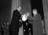 Uppsala universitets rektor Thore Engströmer talar för av Utrikesdepartementet inbjudna tyska pressmän vid banketten på Värmlands nation