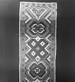 Vävnad, troligen täcke, vävt i krabbasnår hopsytt av två våder. Mycket sliten.