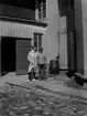 Två barn vid vattentunna i Flora koloniförening, kvarteret Örtagården, Fålhagen