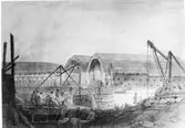 Bilden visar Wasaskjulet på örlogsvarvet i Karlskrona.