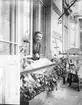 Fröken Sällström ansar sina blommor. Augusti 1952