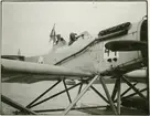 Finska flygbåtar på besök vid Flygverkstäderna på Galärvarvet 1925. I bakgrunden till vänster syns galärskjul 17, där flygingenjörerna hade kontor. I mitten syns flygverkstäderna och till höger hangarer. I bakgrunden Nordiska museet